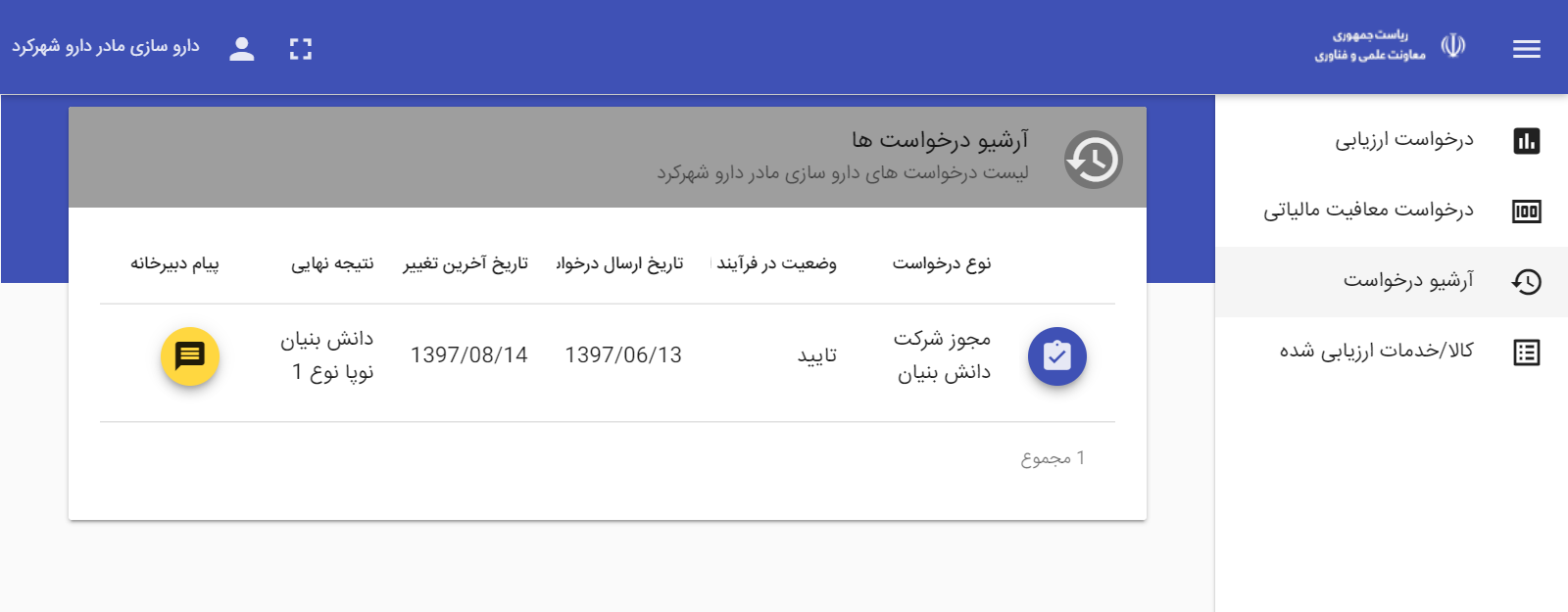 به گزارش روابط عمومی پارک علم و فناوری شرکت داروسازی مادر دارو شهرکرد، موفق به اخذ مجوز دانش بنیان سطح یک از معاونت علمی و فناوری ریاست جمهوری گردید.
